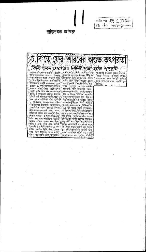 চ.বি’তে ফের শিবিরের অশুভ তৎপরতা