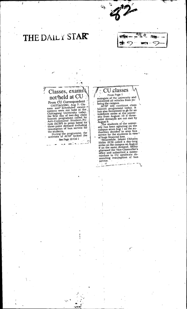 Classes, exams not held at cu Published on Newspaper The Daily Star Category General Education General Education Higher Education Public Download