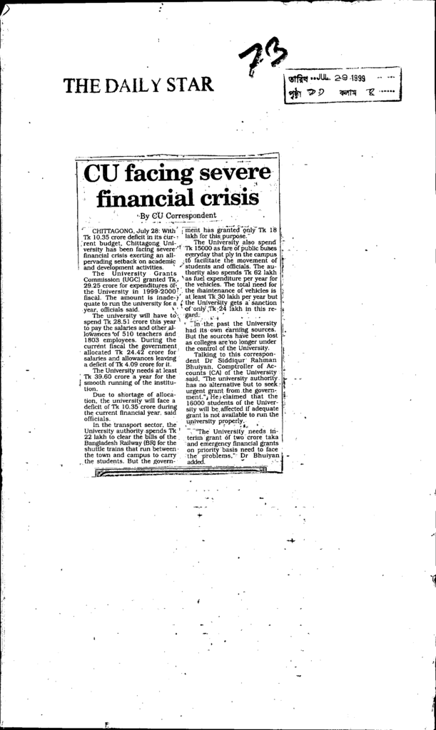 Cu facing severe financial crisis Published on Newspaper The Daily Star Category General Education General Education Higher Education Public Download