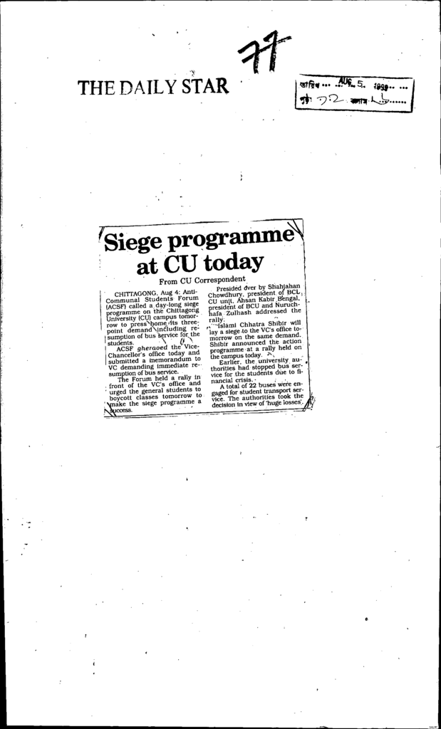Siege programme at cu today Published on Newspaper The Daily Star Category General Education General Education Higher Education Public Download