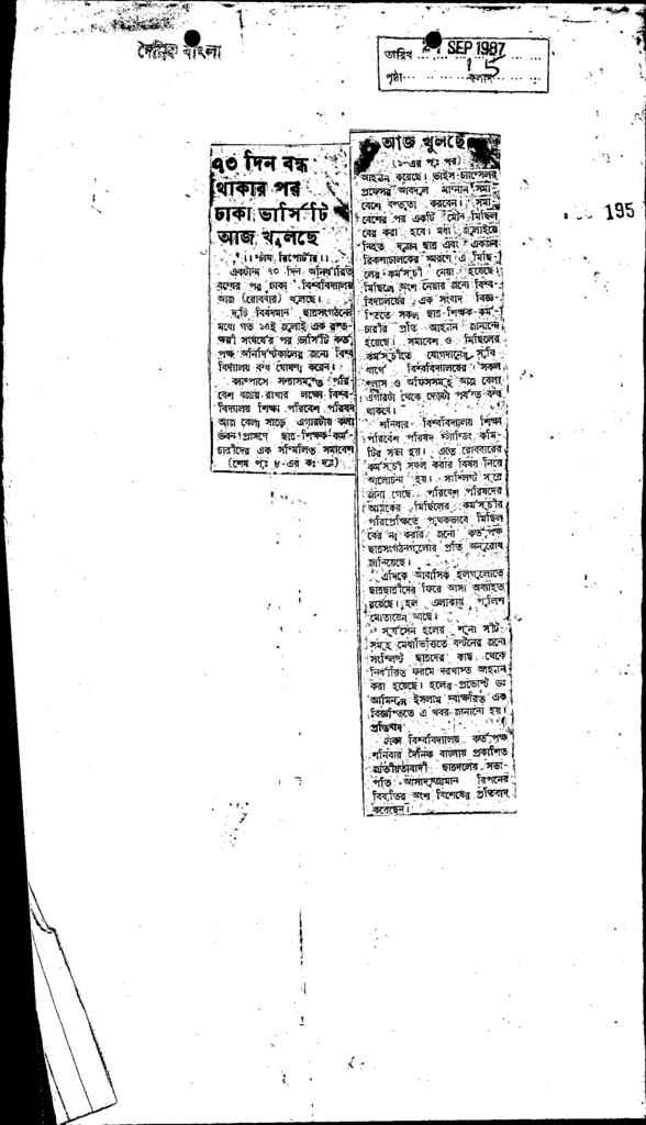 73 দিন বন্ধ থাকার পর ঢাকা ভার্সিটি আজ খুলছে Published on Newspaper দৈনিক সংবাদ Category General Education General Education Higher Education Public Download