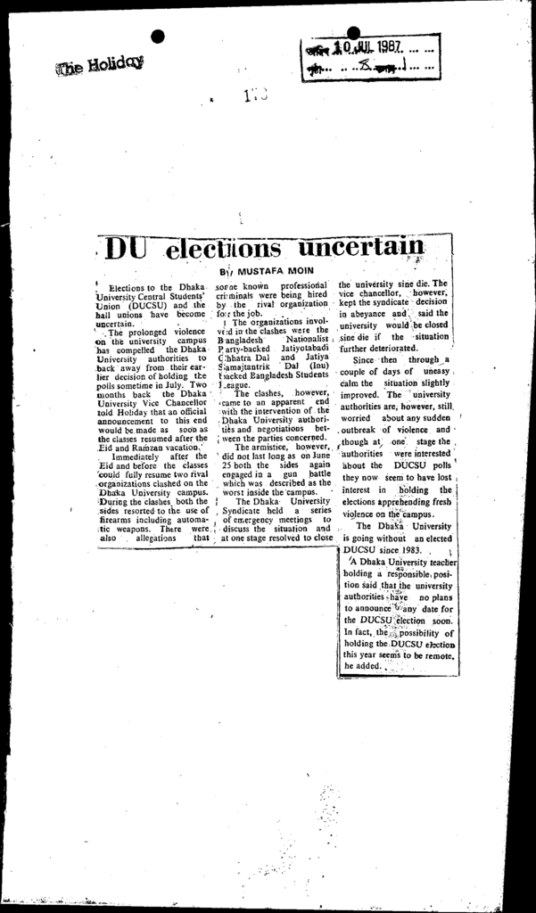 Du elections uncertain Published on Newspaper The Holiday Category General Education General Education Higher Education Public Download