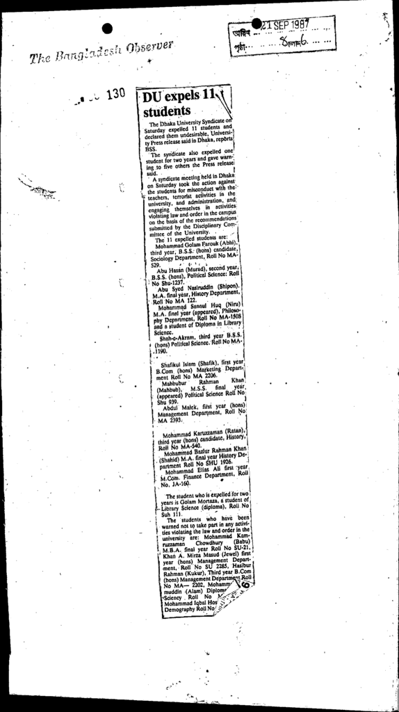 Du expels 11 students Published on Newspaper The Bangladesh Observer Category General Education General Education Higher Education Public Download