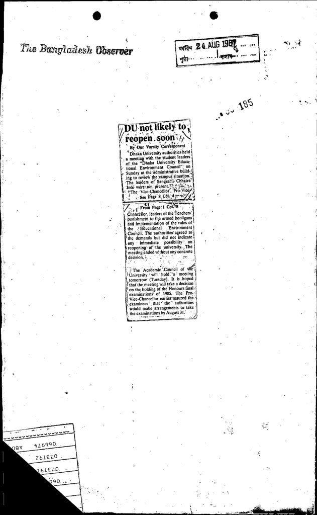 Du not likely to reopen soon Published on Newspaper The Bangladesh Observer Category General Education General Education Higher Education Public Download