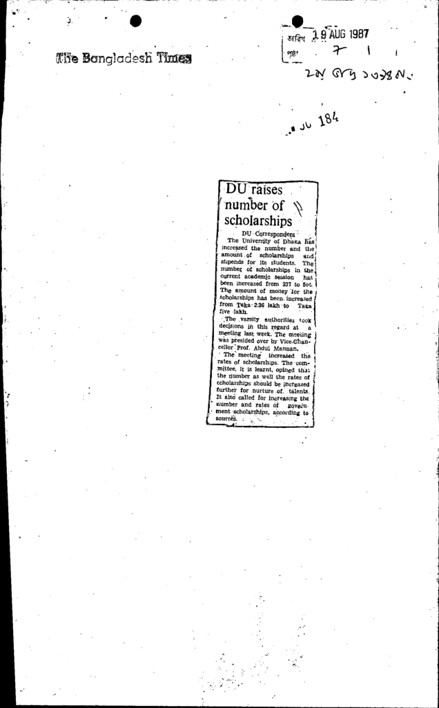 Du raises number of scholarship Published on Newspaper The Bangladesh Times Category General Education General Education Higher Education Public Download
