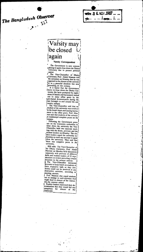 Varsitry may be closed agian Published on Newspaper The Bangladesh Observer Category General Education General Education Higher Education Public Download