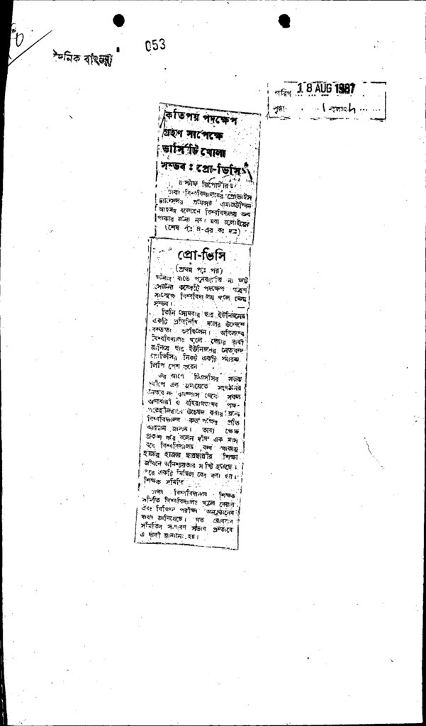 কতিপয় পদক্ষেপ গ্রহন সাপেক্ষে ভার্সিটি খোলা সম্ভব: প্রো-ভিসি Published on Newspaper দৈনিক বাংলা Category General Education General Education Higher Education Public Download