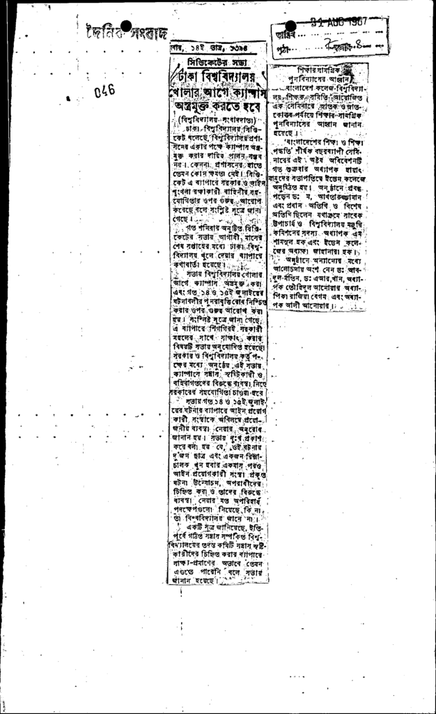 ঢাকা বিশ্ববিদ্যালয় খুলার আগে ক্যাম্পাস অস্ত্রমুক্ত করতে হবে Published on Newspaper দৈনিক সংবাদ Category General Education General Education Higher Education Public Download