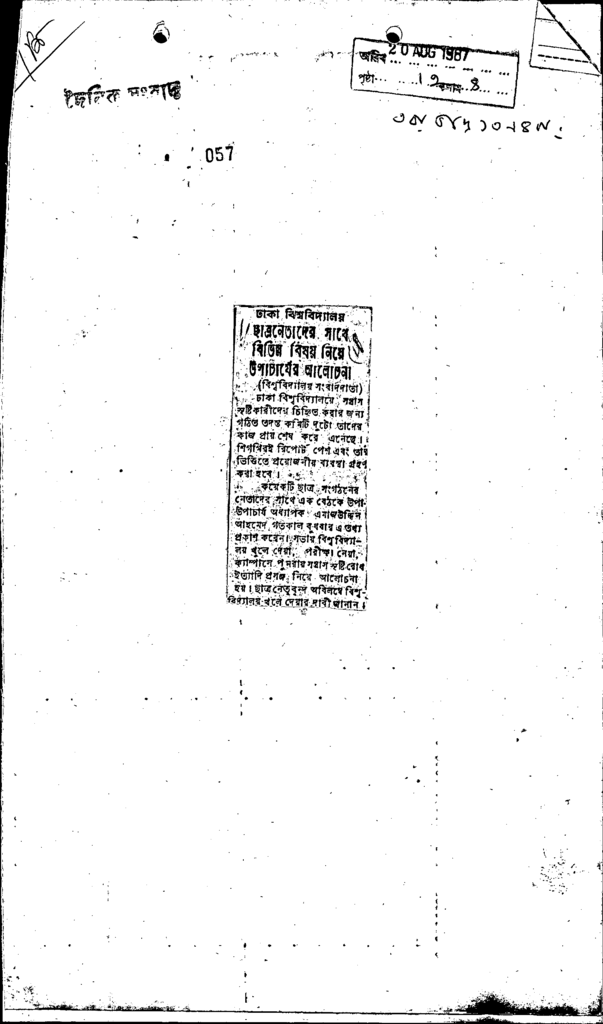 ঢাকা বিশ্ববিদ্যালয় ছাত্রনেতার সাথে বিভিন্ন বিষয় নিয়ে উপাচার্যর আলোচনা Published on Newspaper দৈনিক সংবাদ Category General Education General Education Higher Education Public Download