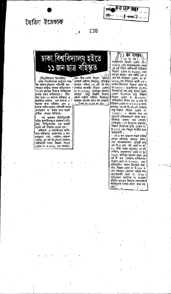 ঢাকা বিশ্ববিদ্যালয় হইতে ১১জন ছাত্র বহিস্কৃত Published on Newspaper দৈনিক ইত্তেফাক Category General Education General Education Higher Education Public Download