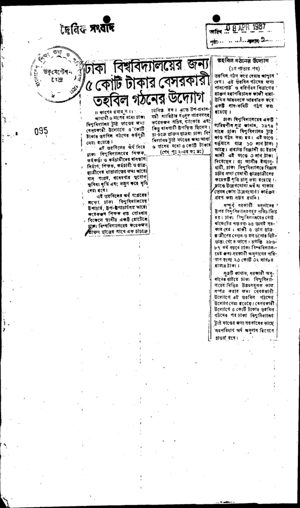 ঢাকা বিশ্ববিদ্যালয়ের জন্য 5 কোটি টাকার বেসরকারী তহবিল গঠনের উদ্যেগ Published on Newspaper দৈনিক সংবাদ Category General Education General Education Higher Education Public Download