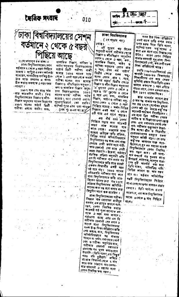 ঢাকা বিশ্ববিদ্যালয়ের সেশন বর্তমানে ২ থেকে পাঁচ বছর পিছিয়ে আছে Published on Newspaper দৈনিক সংবাদ Category General Education General Education Higher Education Public Download