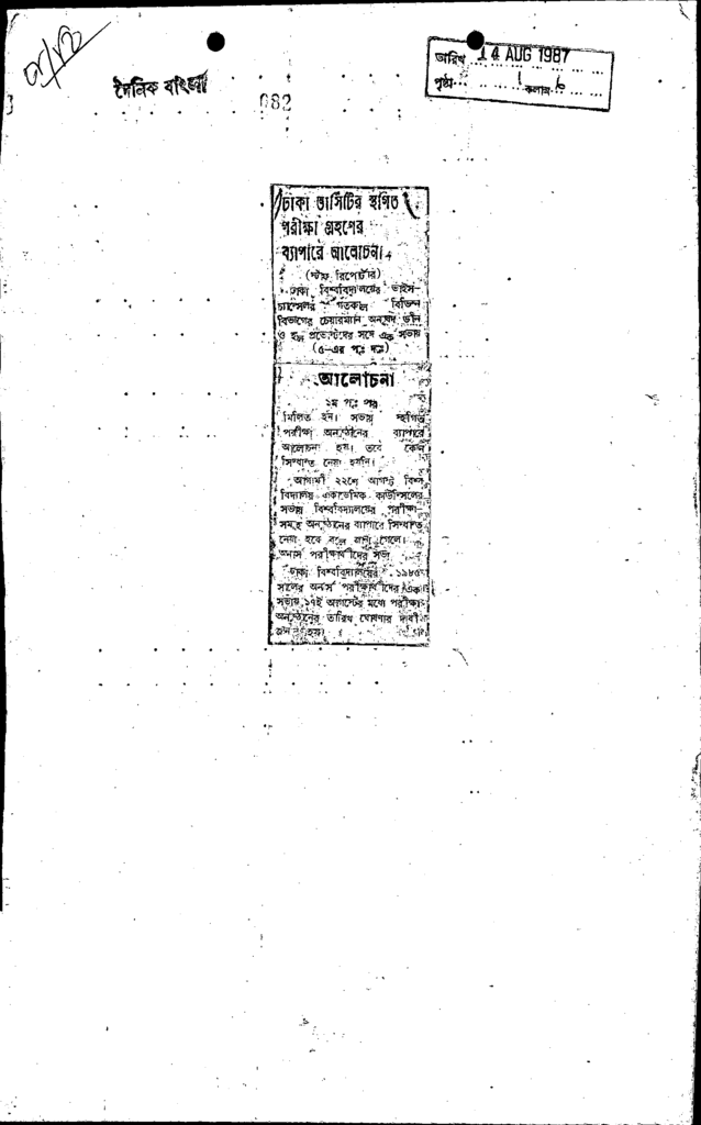 ঢাকা ভার্সিটির স্থগিত পরীক্ষা গ্রহণের ব্যাপারে আলোচনা Published on Newspaper দৈনিক বাংলা Category General Education General Education Higher Education Public Download