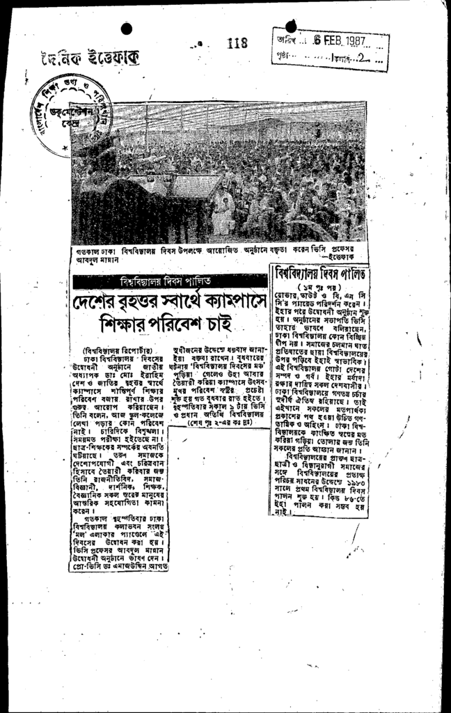 দেশের বৃহত্তর স্বার্থে ক্যাম্পাসে শিক্ষার পরিবেশ চাই Published on Newspaper দৈনিক ইত্তেফাক Category General Education General Education Higher Education Public Download
