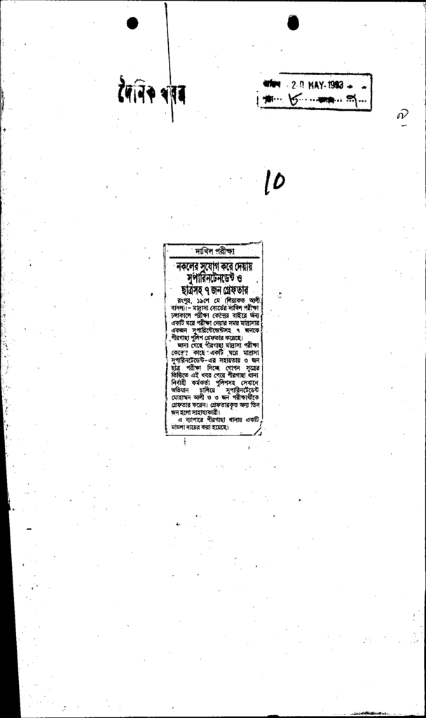 নকলের সযোগকরে দেয়ায় সুপারিনটেনডেন্ট ও ছাত্রসহ ৭ জন গ্রেফতার Published on Newspaper দৈনিক খবর Category Madrasah Education Madrasah Education Alia Download