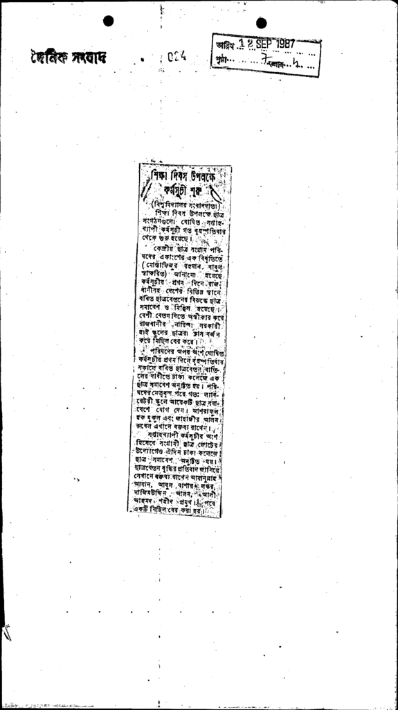 শিক্ষা দিবস উপলক্ষে কর্মসুচী শুরু Published on Newspaper দৈনিক সংবাদ Category General Education General Education Higher Education Public Download