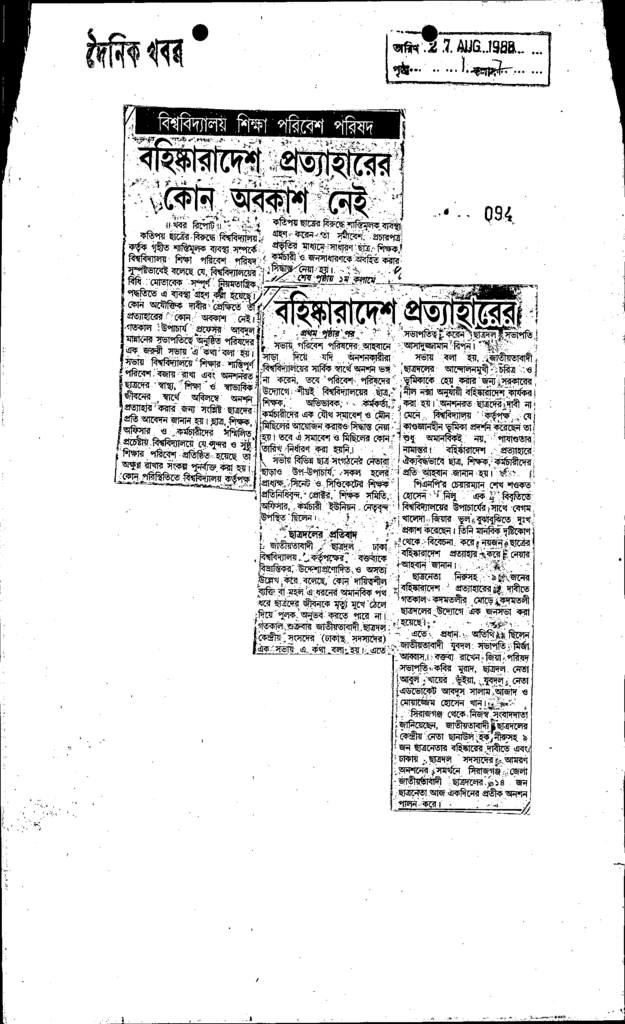 বহিষ্কারাদেশ প্রত্যাহারের কোন অবকাশ নেই Published on Newspaper দৈনিক খবর Category General Education General Education Higher Education Public Download