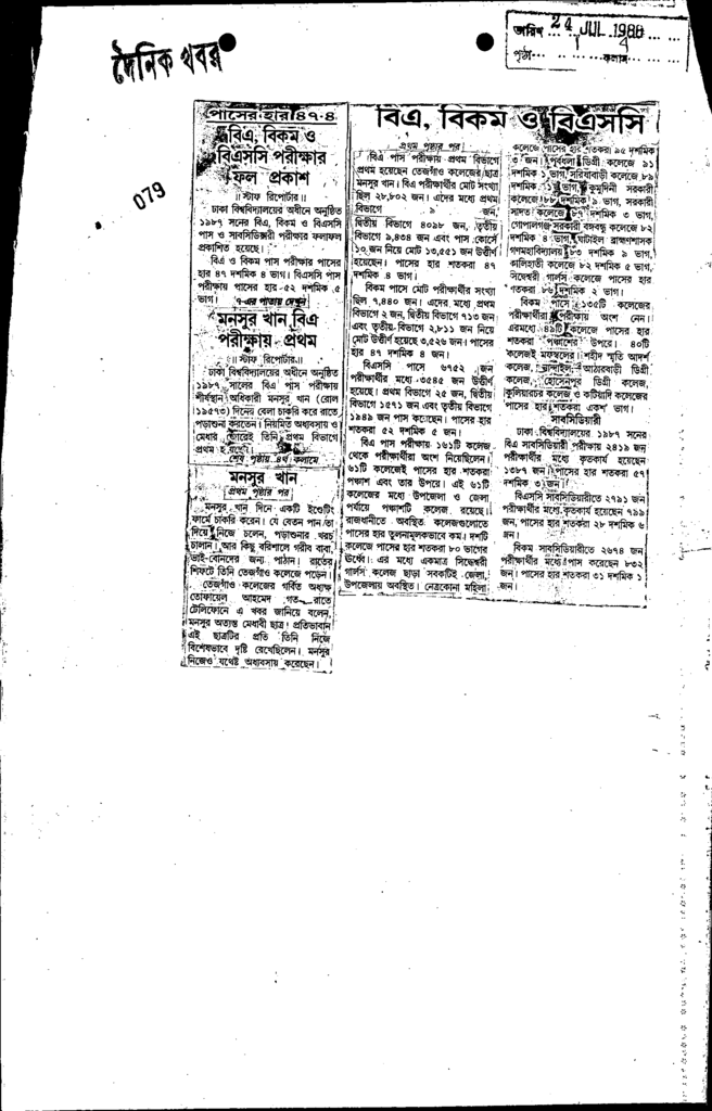 বিএ, বিকম ও বিএসসি পরীক্ষার ফল প্রকাশ Published on Newspaper দৈনিক খবর Category General Education General Education Higher Education Public Download