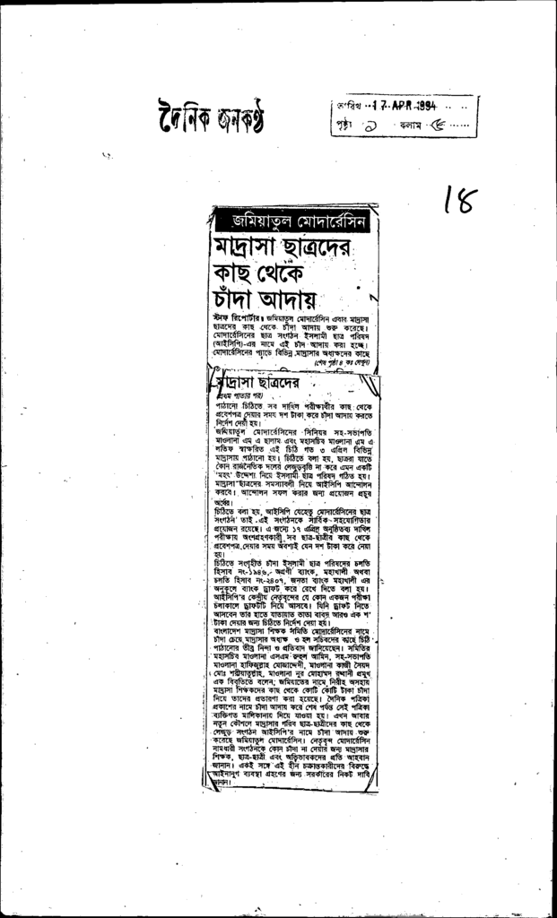 মাদ্রাসা চাত্রদের কাছ থেকে চাঁদা আদায়