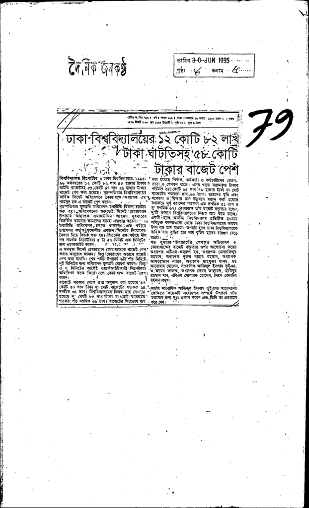ঢাকা বিশ্ববিদ্যালয়ের 12 কোটি 82 লাখ টাকা ঘাটতিসহ 58 কোটি টাকার বাজেট পেশ Published on Newspaper দৈনিক জনকণ্ঠ Category General Education General Education Higher Education Public Download