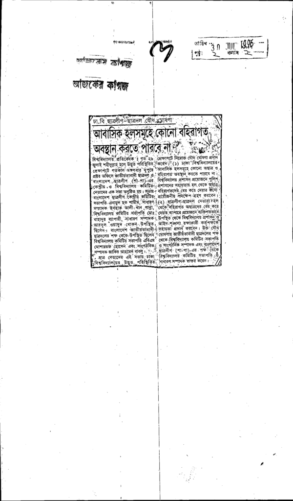 আবাসিক হলসমূহে কোন বহিরাগত অবস্থান করতে পারবে না Published on Newspaper দৈনিক আজকের কাগজ Category General Education General Education Higher Education Public Download