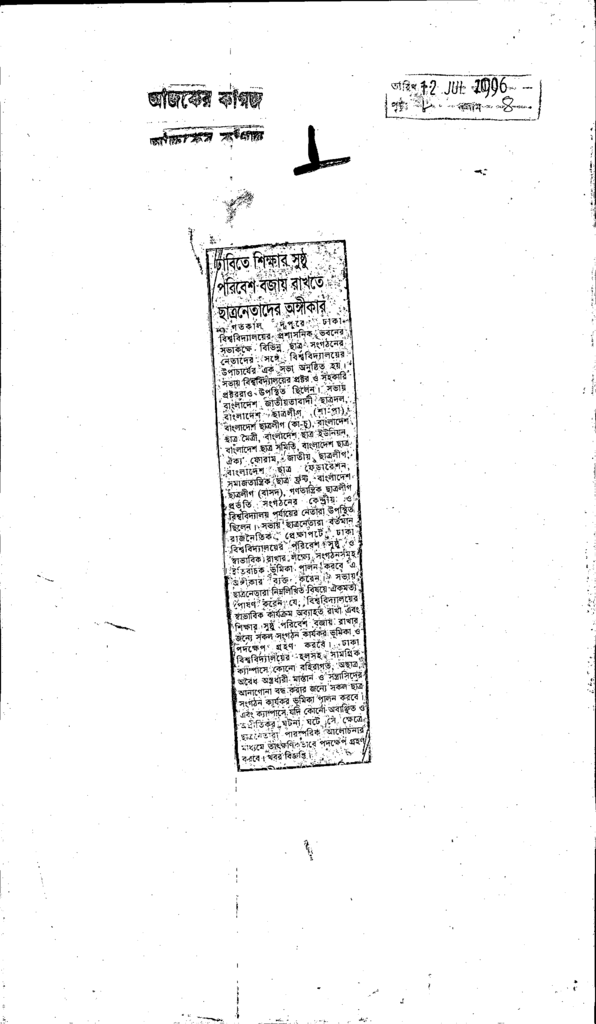ঢাবিতে শিক্ষার সুষ্ঠু পরিবেশ বজায় রাখতে ছাত্রনেতাদের অঙ্গীকার