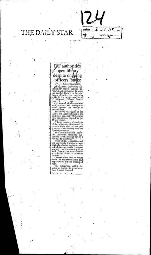 Du authorities open library despite on going officers' strike Published on Newspaper The Daily Star Category General Education General Education Higher Education Public Download