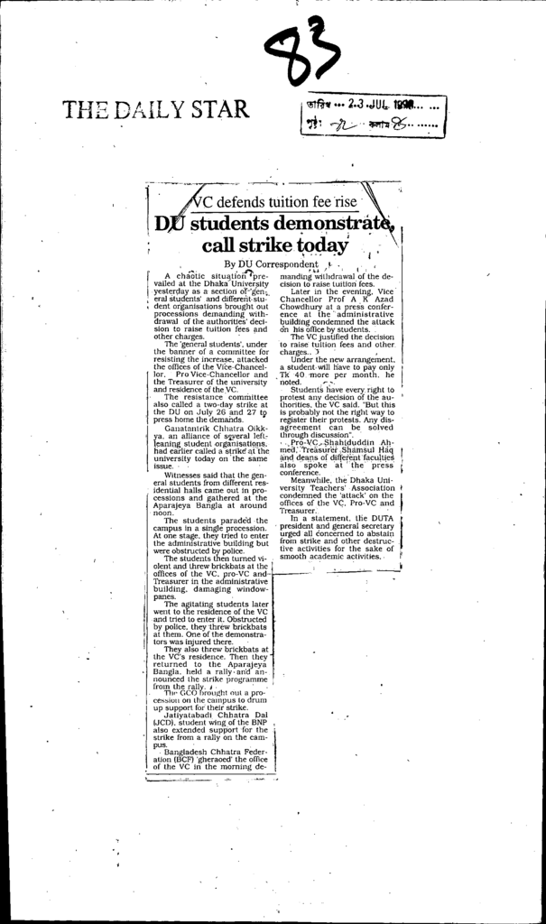 Du students demonstrate, call strike today Published on Newspaper The Daily Star Category General Education General Education Higher Education Public Download