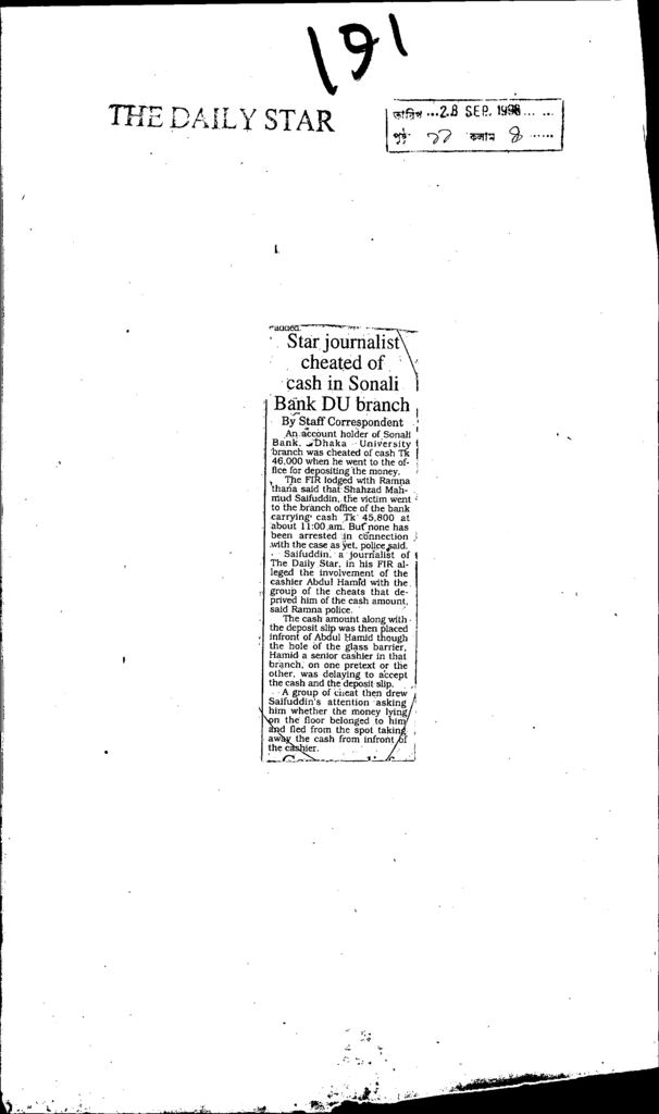 Star journalist cheated of cash in sonali bank du branch Published on Newspaper The Daily Star Category General Education General Education Higher Education Public Download