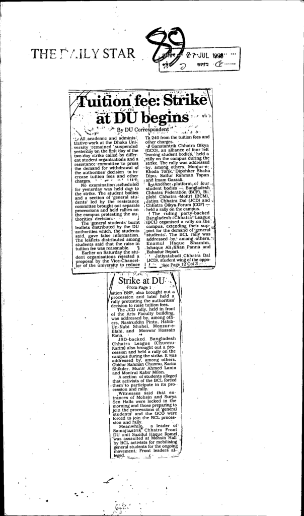 Tution fee: strike at du begins Published on Newspaper The Daily Star Category General Education General Education Higher Education Public Download