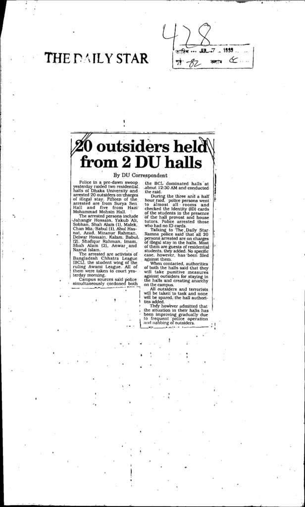 20 outsiders held from 2 du halls Published on Newspaper The Daily Star Category General Education Higher Education Public Download