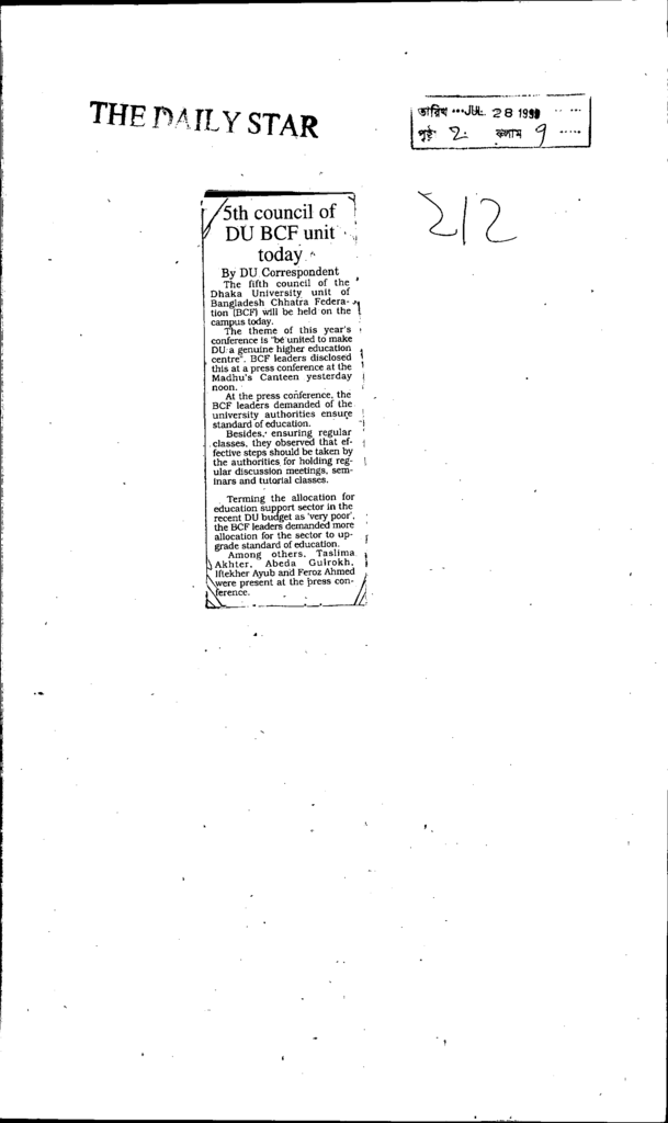 5th council of du bcf unit today Published on Newspaper The Daily Star Category General Education Higher Education Public Download