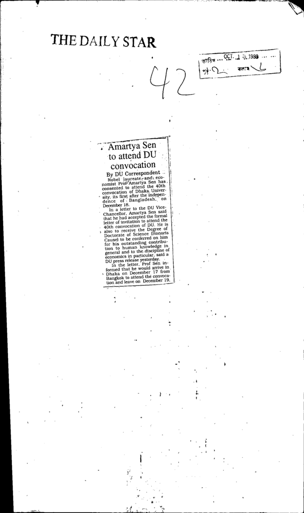 Amartya sen to attend du convocation Published on Newspaper The Daily Star Category General Education Higher Education Public Download