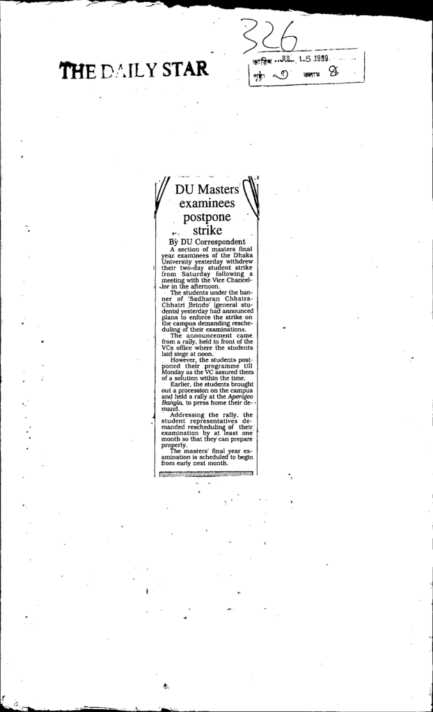 Du masters examinees postphone strike Published on Newspaper The Daily Star Category General Education Higher Education Public Download