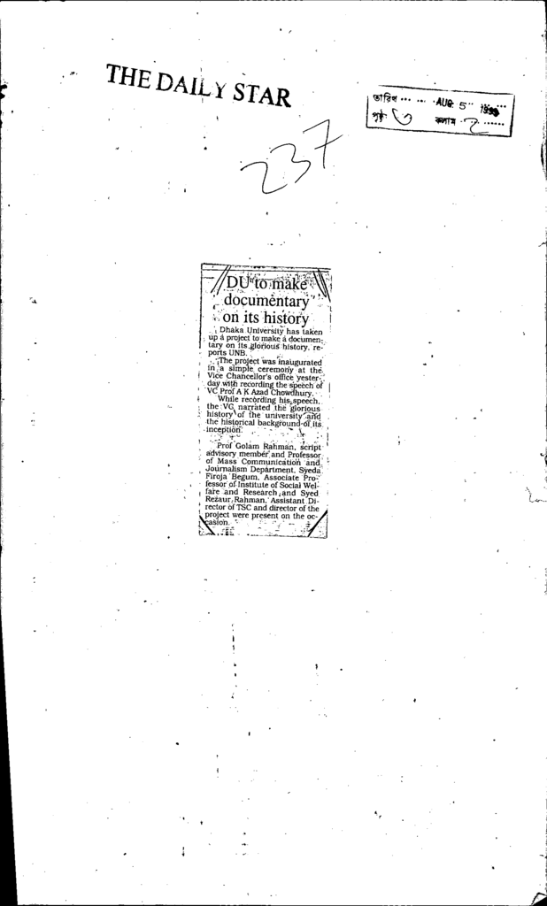 Du to make documentary on its history Published on Newspaper The Daily Star Category General Education Higher Education Public Download
