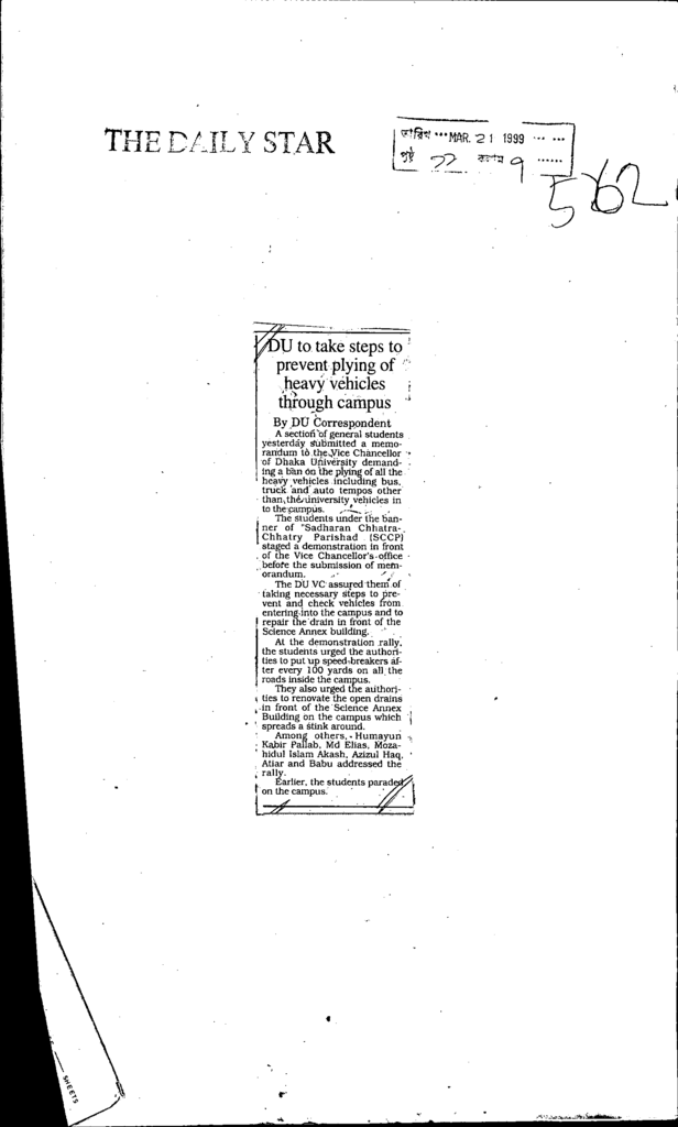 Du to take steps to prevent plying of heavy vehicles through campus Published on Newspaper The Daily Star Category General Education Higher Education Public Download