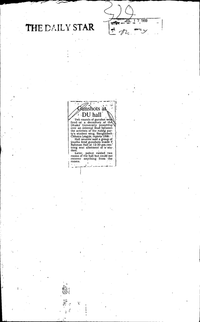 Gunshots at du hall Published on Newspaper The Daily Star Category General Education Higher Education Public Download