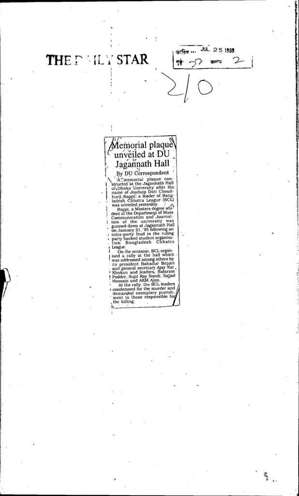 Memorial plaque unveled at du jagannath hall Published on Newspaper The Daily Star Category General Education Higher Education Public Download