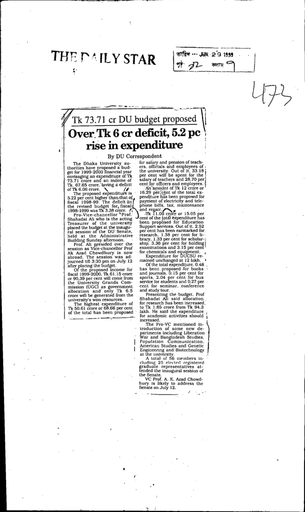 Over tk 6 cr deficit, 5.2 pc rise in expenditure Published on Newspaper The Daily Star Category General Education Higher Education Public Download