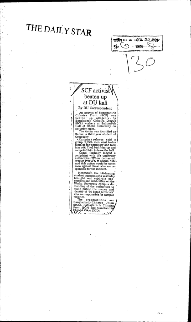 Scf activist beaten up at du hall Published on Newspaper The Daily Star Category General Education Higher Education Public Download