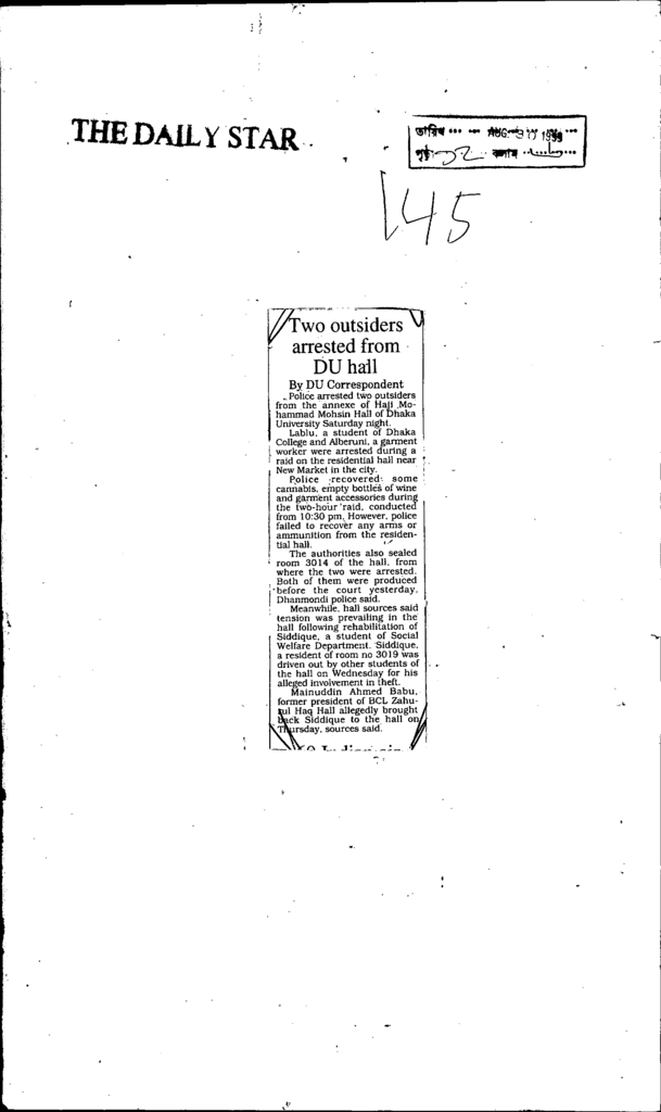 Two outsiders attrsted from du hall Published on Newspaper The Daily Star Category General Education Higher Education Public Download