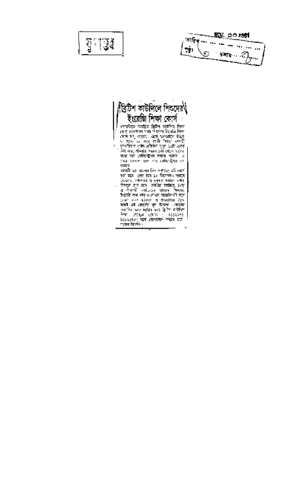 ব্রিটিশ কাউন্সিলে শিশুদের ইংরেজী শিক্ষা কোর্স Published on Newspaper দৈনিক যুগান্তর Category General Education International Organization Others Download