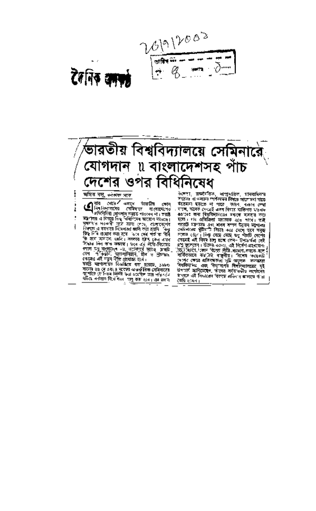 ভারতীয় বিশ্ববিদ্যালয়ে সেমিনারে যোগদানঃ বাংলাদেশসহ পাঁচ দেশের ওপর বিধিনিষেধ