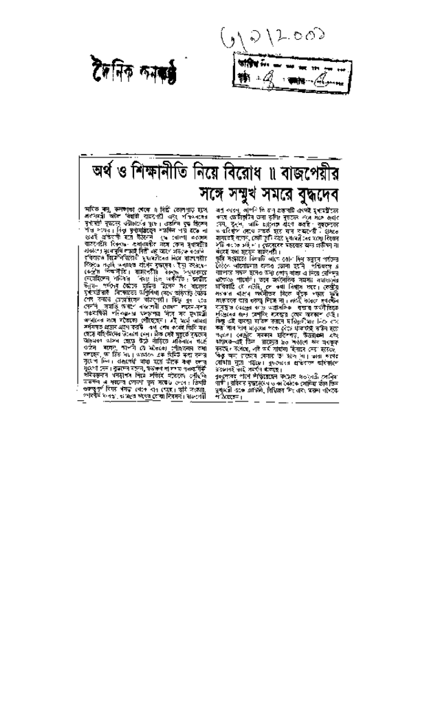 অর্থ ও শিক্ষানীতি নিয়ে বিরোধঃ বাজপেয়ীর সঙ্গে সম্মুখ সমরে বুদ্ধদেব Published on Newspaper দৈনিক জনকণ্ঠ Category Education Policy / Education Commission International Organization Others Download
