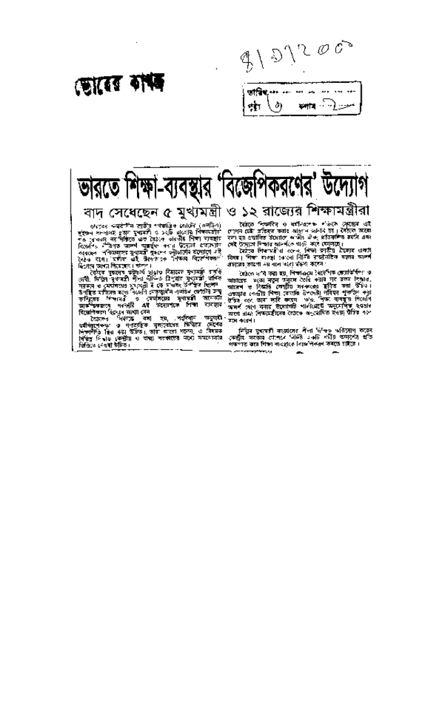 ভারতে শিক্ষা-ব্যবস্থার ‘বিজেপিকরণের’ উদ্যোগ Published on Newspaper দৈনিক ভোরের কাগজ Category Personal Opinion / Discussion / Commentary International Organization Others Download