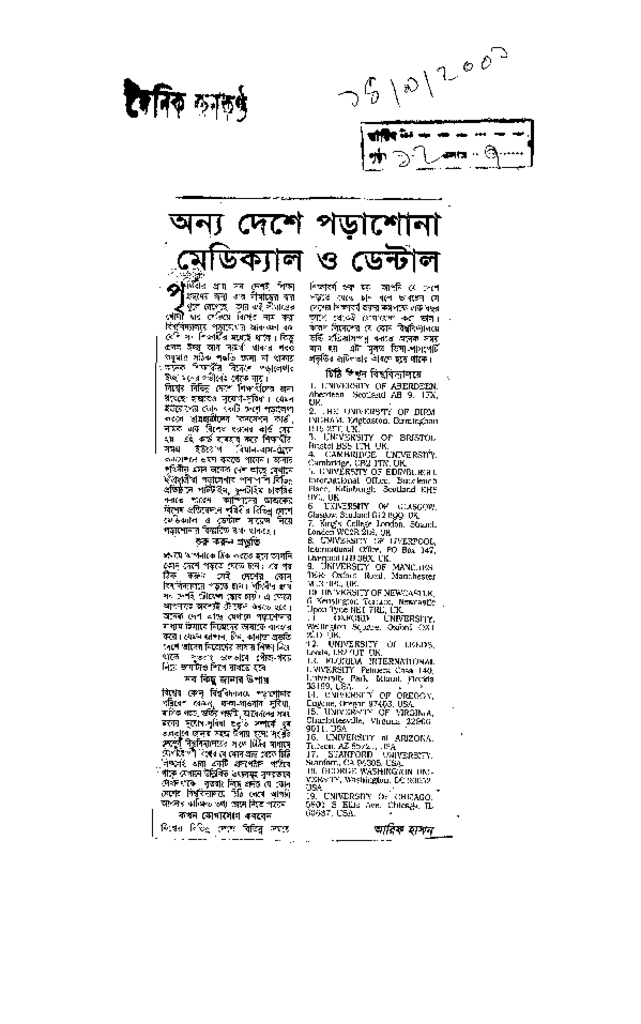 অন্য দেশে পড়াশোনা মেডিক্যাল ডেন্টাল Published on Newspaper দৈনিক জনকণ্ঠ Category Professional Education International Organization Others Professional Education Medical Download