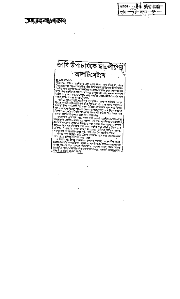 জাবি উপাচার্যকে ছাএলীগের আলটিমেটাম Published on Newspaper দৈনিক সমকাল Category Student Politics Download
