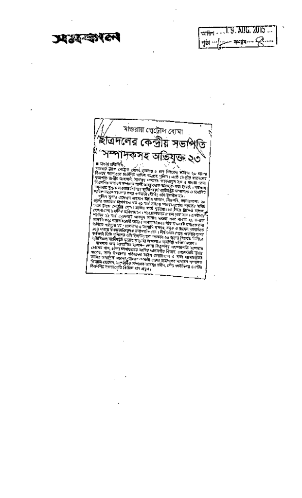 মাগুরায় প্রেট্রোল বোমা ছাএদলের কেন্দ্রীয় সভাপতি সম্পাদকসহ অভিযুক্ত ২৩