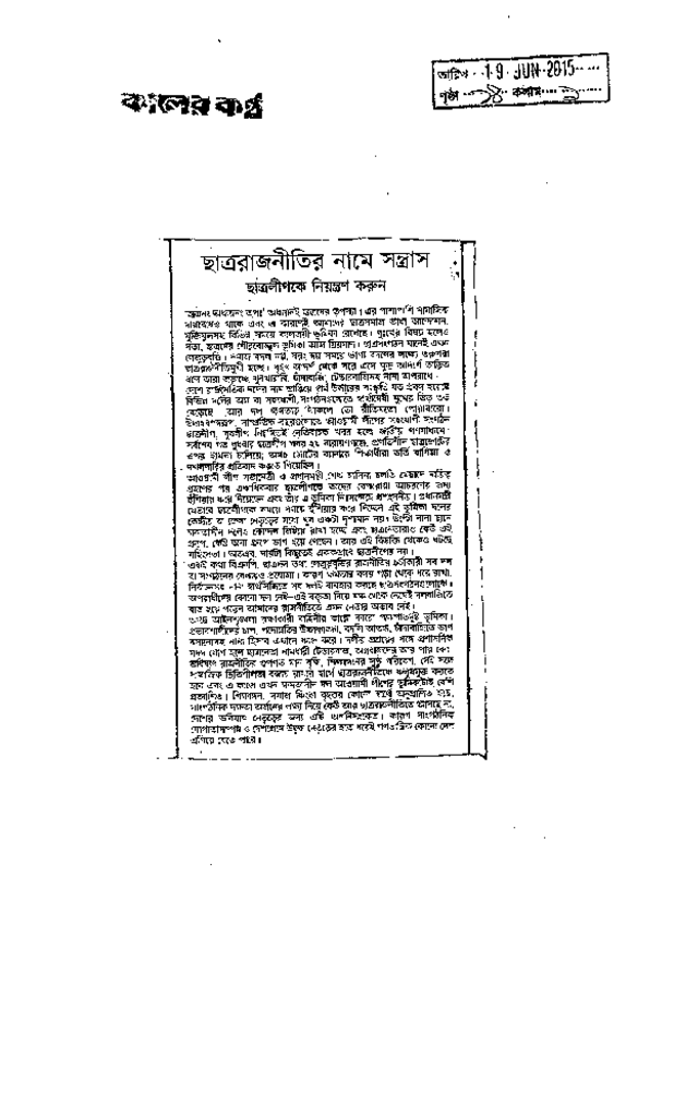 ছাত্ররাজনীতির নামে সন্রাস ছাত্রলীগকে নিয়ন্ত্রণ করুন
