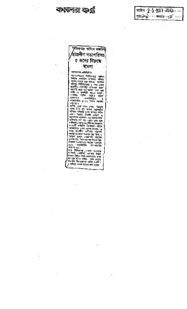 ছাত্রলীগের সভাপতিসহ ৫ জনের বিরুদ্ধে মামলা